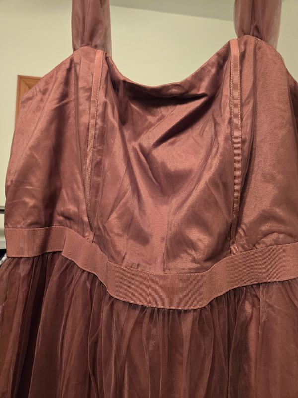 Embrace your feminine allure with the Charming Midi Dress, designed with a tastefully demure neckline and bra concealing mesh shoulder straps. The dress includes understated boning at the bust for shaping and a flex-fit binding, developed specifically to complement curves. This dress also stands out with a distinct tiered mesh overlay skirt, promising a showstopping ensemble that will surely invite inquiries at our next elegant occasion.