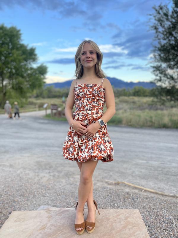 A cute and flirty day dress that can be easily worn for a fun night out! The top hugs the torso very snug and flatteringly (holds everything neatly together). The semi-puffed and almost tented bottom of this dress adds to the femininity of its charm. Well made dress; it is short. I love it! I didn’t realize this was a junior’s dress when I bought it. I am 5’3, curvy which includes my beautifully accentuated bottom. 130lbs Age- 43