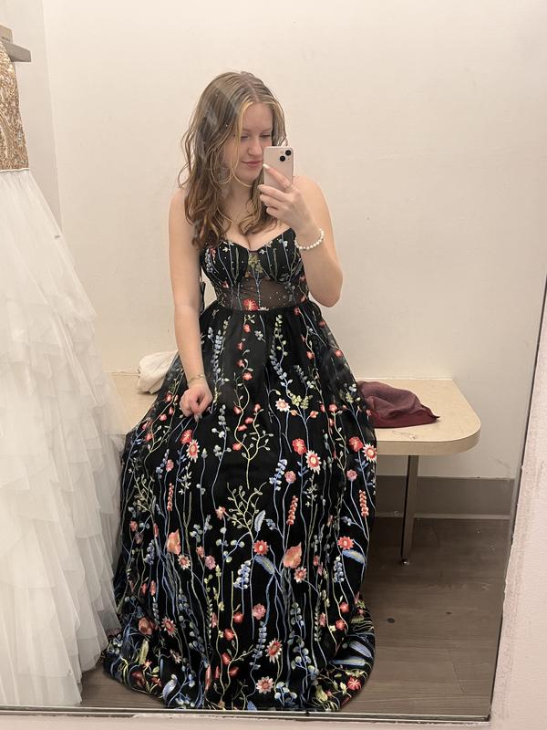 This dress is absolutely beautiful! The embroidering on the dress is absolutely gorgeous. Problem was the top of the dress isn’t meant for people with any sort of breast tissue. Even in a size 11 my boobs overflowed the top of the dress. But seriously the price for the quality of this dress blew my mind, just a well done and beautiful dress
