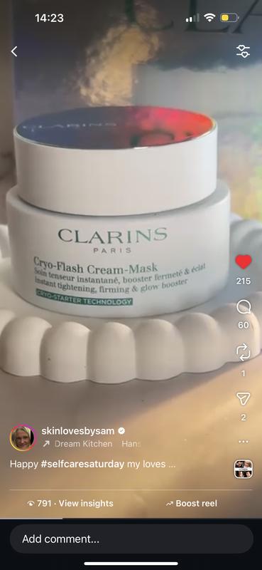Get 10% off CLARINS with code SAMANTHA10 - I absolutely Love this CRYO Mask!! It hleaves an icy cool sensation when you apply it to your skin, & I found this was great in the summer when my skin needed cooling. It’s got a luxurious texture to it, so it feels rich & creamy even though it’s a gel like texture. A little goes a long way to o & this has lasted me all summer. I will definitely be purchasing again!! You can see my video review on my instagram & TikTok pages @skinlovesbysam