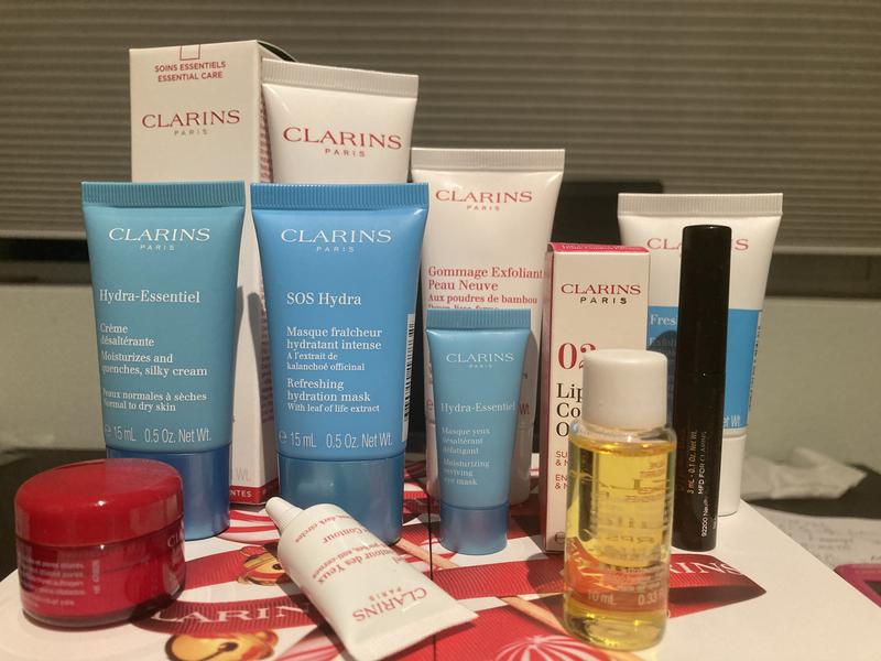 A delightful array of skin care must-haves that I use for stocking stuffers for my friends who are always delighted with Clarins and which gives them an intro to new products.