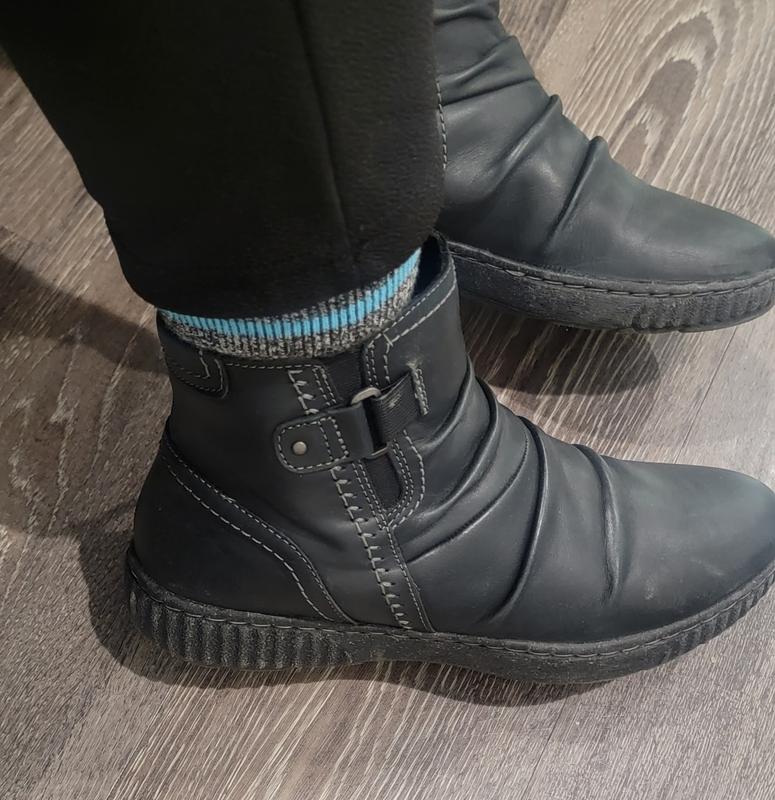 I normally wear a size 9 in but I had to go up a half size with this brand. They are so comfortable! I was able to wear them all day without discomfort on my first wearing. Soft, lovely leather and the zipper on the side makes them easy to get on and off. They look cute with leggings and jeans too.