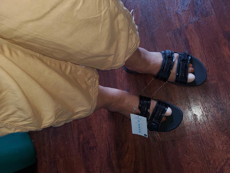Sandal is completely adjustable - allows room for bunions! Love the cushioning.