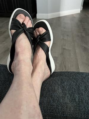 Ugliest sandals with the black soles. Even my husband made a remark about them and he never notices anything. Not comfortable either