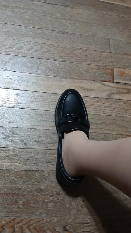 Shoes are true to size. Very comfortable. I can wear them all day without my orthotics.. They are cute and look fine with jeans. Feet look average and not huge like some lug loafers tend to do.