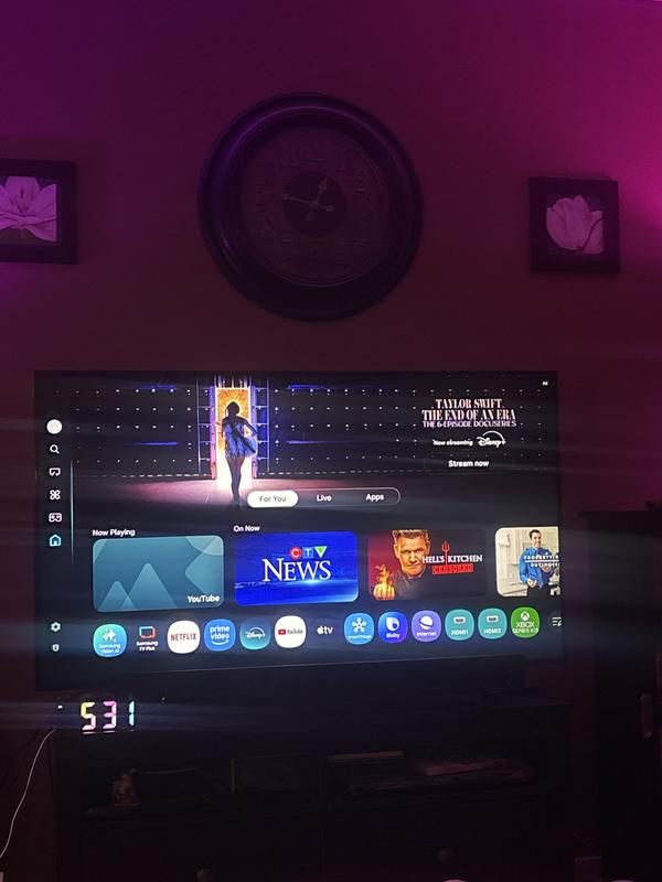 Wow+ So much fun viewing a TV that makes you feel kinda, sorta, like your there - in the scene your viewing! Our other TV’s have been much smaller, since we could not find one that had base supports to fit our video/audio stand. This Samsung model has support legs that has multiple locations to insert the support legs and the TV fits perfect on our stand in our limited space - Very Nice! It takes awhile to get use to the very small and slim remote control, but once your acclimated to it, it’s fast and easy to use. We are pleased with the color and clarity of this Samsung model and it responds quickly to channel selections. A Smart TV? YES it is very smart, with many varied selections available. Glad we purchased Samsung!
