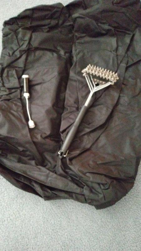 I got the opportunity to use this nice grill cover and grill brush and they work well. The grill cover works well with coverage and the material is sturdy and not flimsy. The brush works really well for cleaning.