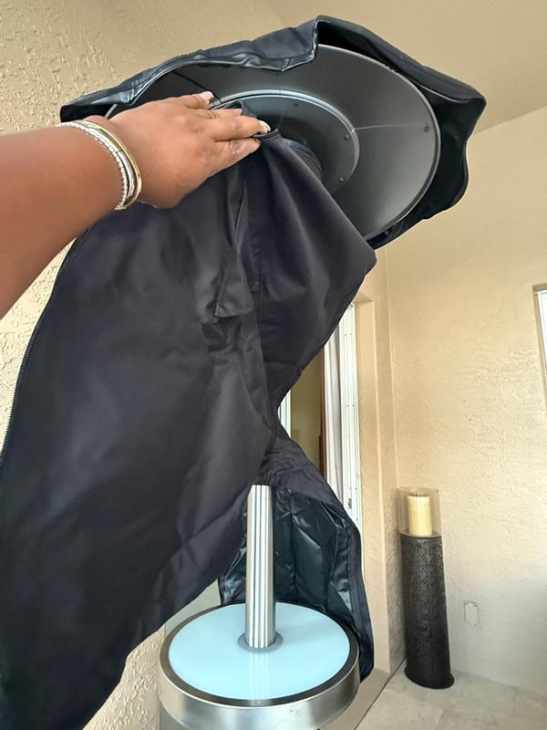 This cover is perfect for my patio heater. It's a thick and durable material, and is perfect to protect the heater from the outside elements as even when not in use it stays outside under my deck. It's very easy to unzip and pull down to the bottom of the base during use, and very easy to close back up.