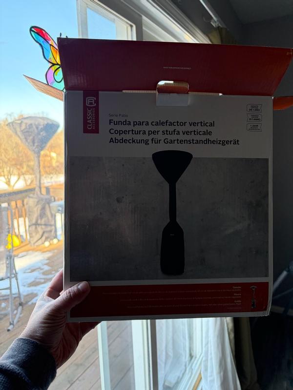 The fit is perfect and we got it put on just in time! You can see that it will be protected all winter with no worries of damaging our patio heater. Installation was quick and done in less than three minutes. The fabric is heavy duty and I’m not worried about it withstanding our cold temperatures.