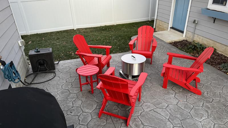 The red chair fades if in the sun .The company states warranty does not cover this. Would not replace chairs.Did however give 50% refund but i do not want faded chairs. Beware!!