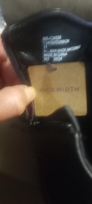 The boots were ordered in size 11 wide. However, I received one boot in size 11 wide and the other in size 11 medium. If you review my pictures, you can see that the width on one boot is conveniently missing and paper tag with "wide width" was attached. I do not know where the breakdown in quality customer service occurred. But, I thought Macy's had better values than this and would not treat there senior customers for decades like this. I think this a shame because I would have given it 5 stars.