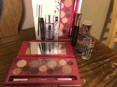 Bought this for the eyeshadow palette. Love that there is such a variety of brown/beige neutral shades. This will be perfect for traveling. Several months ago, you offered a similar palette on a promo, but by the 2nd day, when I went to order it, it was already sold out-I was so disappointed! I'm very glad Clinique took the hint and offered it (or similar to it) again. I especially like that several of the shades are matte. As I get older, I find matte shades work better, especially for daytime wear. The shimmers are good for nighttime. Thank you for making this available again. It would be great if Clinique made some basic shadow palettes available all the time, even better if they were perhaps smaller but available in all-matte and all-shimmer varieties, which would be perfect.