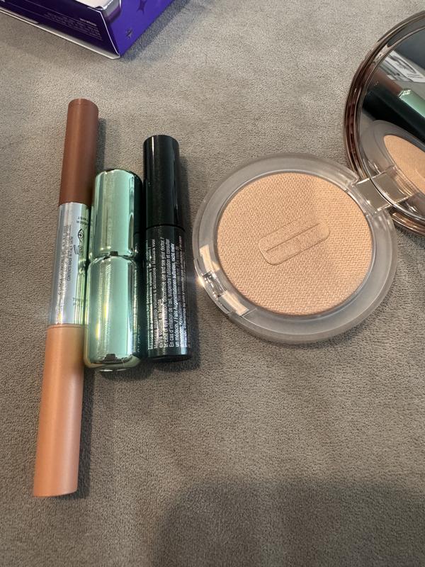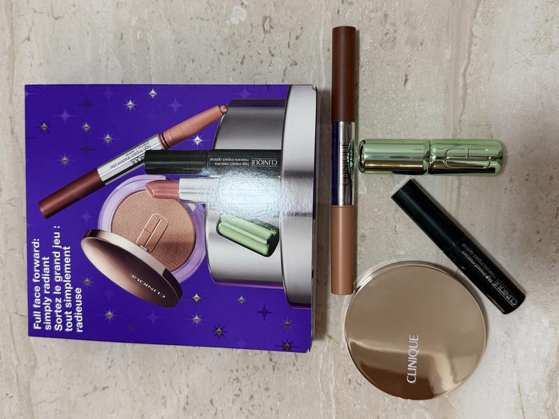 Every product is so multifunctional and this makes for a full face look except for foundation / concealer. I especially loved the highlighter as it's so luxurious- feeling and finely milled, you can really build up the intensity, or just go for a subtle glow. The stick eyeshadow is extremely long lasting and the powder one layers beautifully on top. Lipstick is a lovely neutral pink shade that is almost-sheer like a gloss, but still has lasting power. I sheer it out like a lip stain and added gloss on top. I'm a mascara girl so that was the first thing I tried. It has a good size brush, isn't clumpy or flaky, adds nice volume, and stays put well considering it is not waterproof. Love the highlighter for insides of eyes and tops of cheekbones. The double sided eyeshadow is a nice touch to create a blended look. "I received this product for free from Clinique for testing and review purposes."