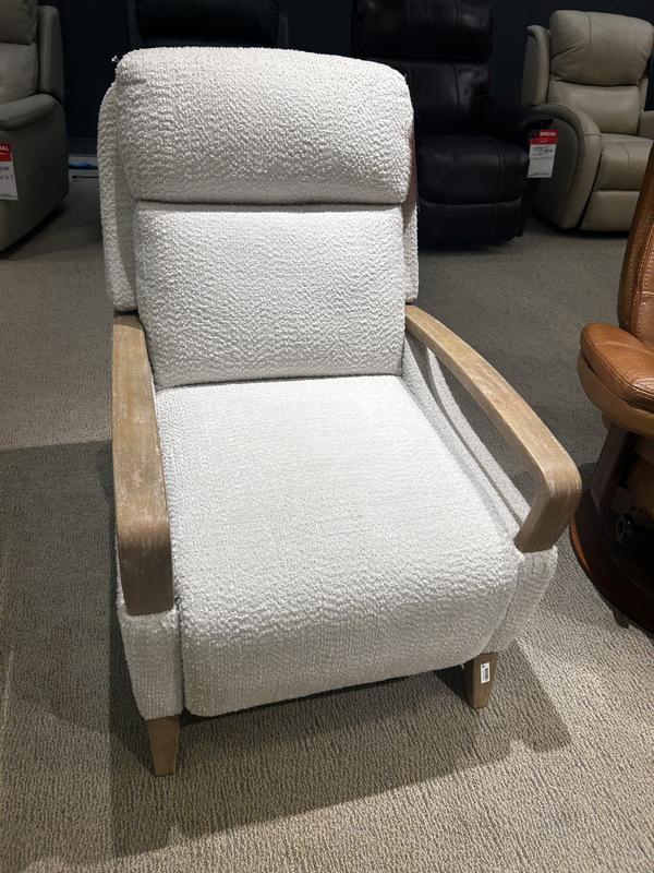 A contemporary push back recliner offers the best in comfort and style, this piece features a solid wood base and arm detail in a neutral coastal finish, as well as a soft on-trend fabric that coordinates with any decor. When you want to recline, simply push back through the arms and feel yourself relax into the comfortable back cushion. A hidden ottoman extends to support your legs in recline, while a plush headrest ensures comfort from head to toe. Even better, this recliner has tension adjusters under the chair, which allow the ease of recline to be tailored to the users' height, strength and weight.