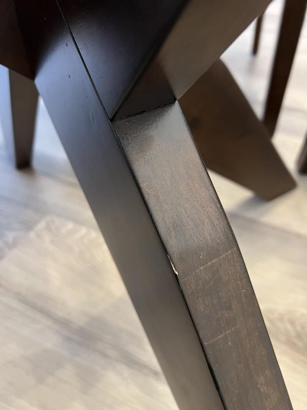 One of the chairs was missing the bottom plastic piece under the leg. The nail was sowing and would have scratched wood floor. Customer service would not send the piece. They wanted to come out again which being downtown Chicago is a hassle. Not great.