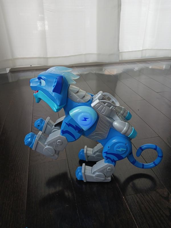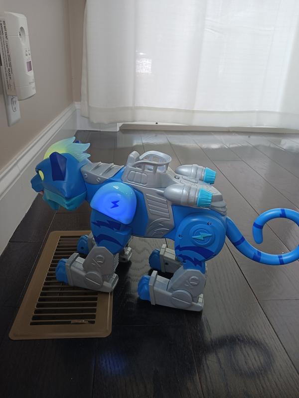 Ok, there is alot more going on with this toy than I intially expected! Candidly, it might be a little more than my house was prepared to handle :) This cat charges forward, and rears up on its hind legs. There are lights and sounds, and it also plays the theme song. It also can read/recognize other action figures and respond to them and cause reactions from the smaller toys (maybe a little remeniscent of the droids at disney?) which is both pretty cool, but also a little much for a four year old. Overall, the functionality and technology in this toy is impressive, but maybe it would be more appreciated by a kid who is slightly older.