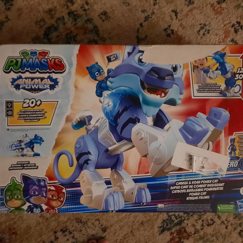 The Pjmasks Animal Power Power Cat was so much fun to play with. Hard floors recommended. With 20 plus sounds and lights it's very active. Charges up and forward. The Hero I.d is very cool, if you collect the different heros and attach them they make different sounds and lights, we have gotten 2 additional ones so far. My grandson loves it.