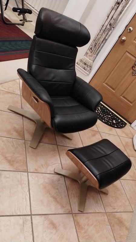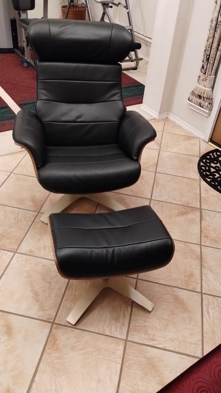 Handsome chair. We purchased this chair and ottoman a year and a half ago and loved it so much we decided to get another one. They are very comfortable for a small or large person.