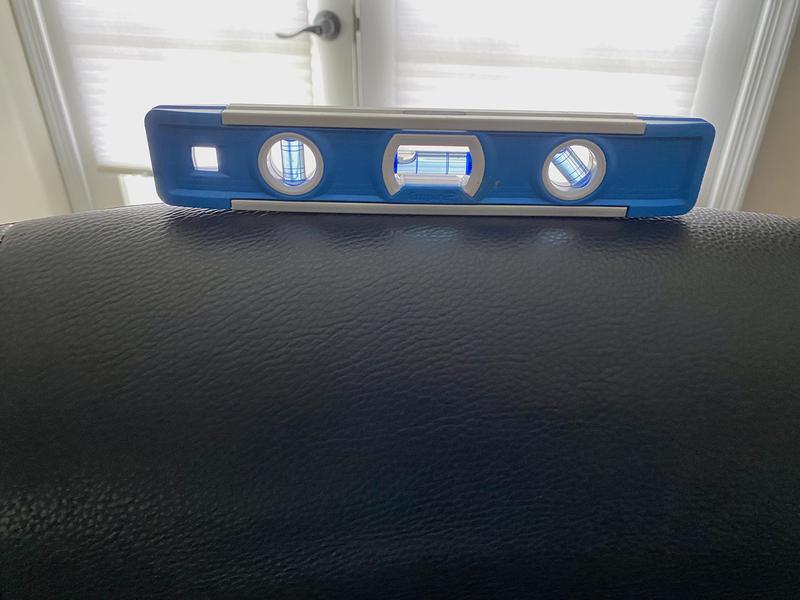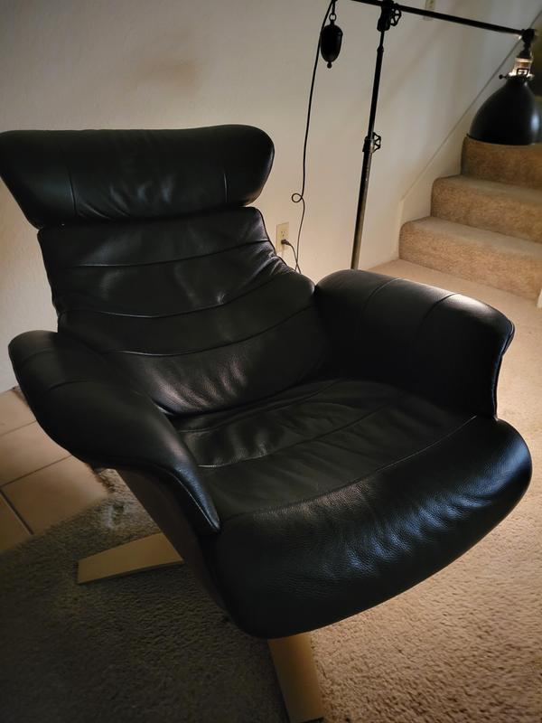 I love this chair and ottoman. I was really worried with the mixed reviews, but I bought it anyway because it had every feature I was looking for. The base is substantial and heavy. It's not crooked or unlevel. The top-grain leather is gorgeous, and it's very comfortable. The headrest is plenty tall enough (and my husband is 6'-3"). I'll watch for the black goo and deal with that if it happens. I opted NOT to get the extended warranty from Macy's. The manufacture warranty is 2 years on the leather (not wear and tear), 2 years on the cushion, and 5 years on the frame. I'll cross my fingers and take my chances on that.