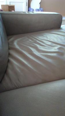We have purchase 3 of these couches for our lake house. They have seen dogs and kids and water and are still in wonderful shape--to the eye and to the sit! I do not know why Macy's isn't selling these anymore. The leather is lovely and they are very comfortable. We have a tan one and this darker one which is more of a dark gray/brown.