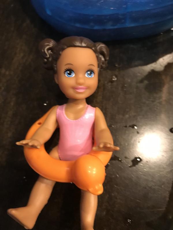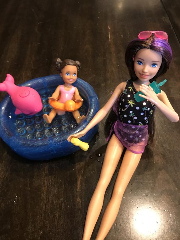 My daughter was so excited to open this set! It's really cute and has lots of little details which captured her imagination, she especially liked the colour changing swimsuit on the smaller doll - a shell appears on the front of it when you put her in the paddling pool and my daughter was thrilled to watch this appear and disappear. As well as the Skipper Doll and a smaller child doll, the set comes with a paddling pool and accessories such as sunglasses and drinks bottles. The paddling pool has a squirty feature on the side so when you fill it up you can squeeze it and water shoots up. My daughter thought this was really good fun as the water squirts up higher than you think it will. However, as a parent, I'm pleased to say it doesn't make too much mess as in reality only small amount of water comes out (lay a tea towel down or have a small cloth to hand and it's fine). I also like that the set isn't too big so it would be a great toy to take with you to grandparents' houses etc. Everything in the package is well made and of excellent quality, the little paddling pool is very sturdy and the squirty mechanism strongly attached so I feel it will be durable. My daughter has had hours of fun with this already and I'm definitely going to look into expanding our collection.