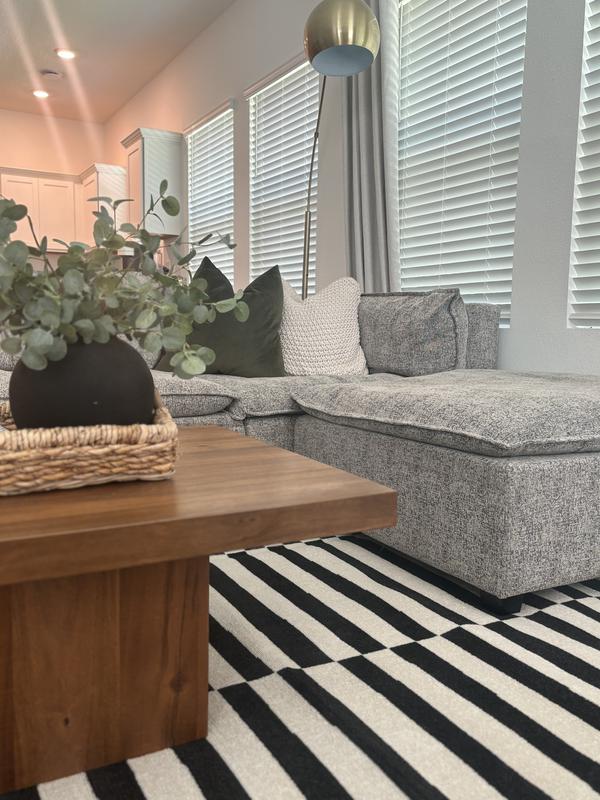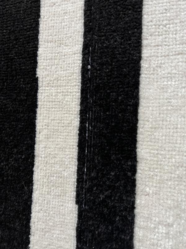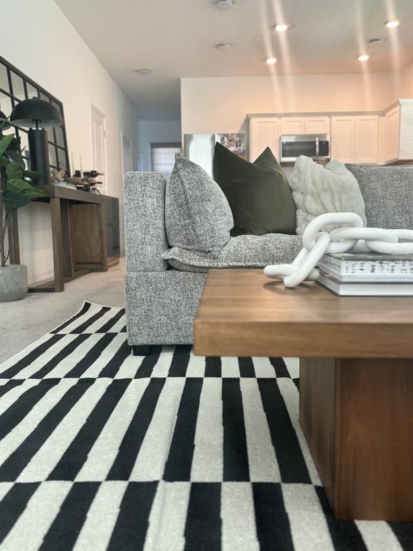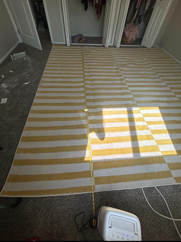 It’s the exact addition I was looking for in my bedroom. I really like that the stripes are staggered. I have a queen sized bed, and went with the designer tip to order an 8x10 as the appropriate size for the bed. It looks great.