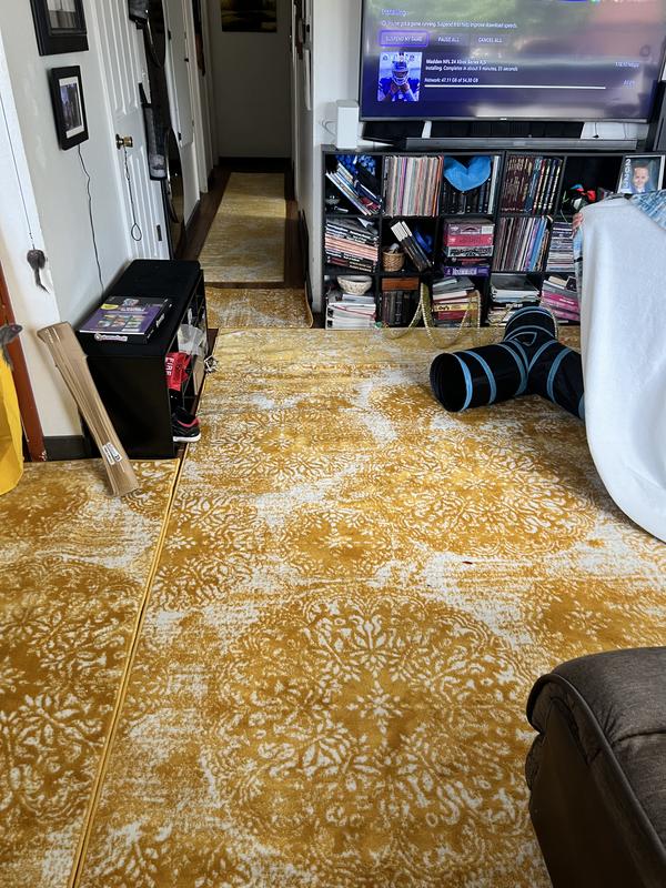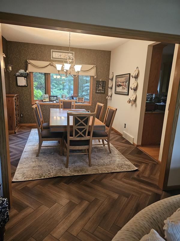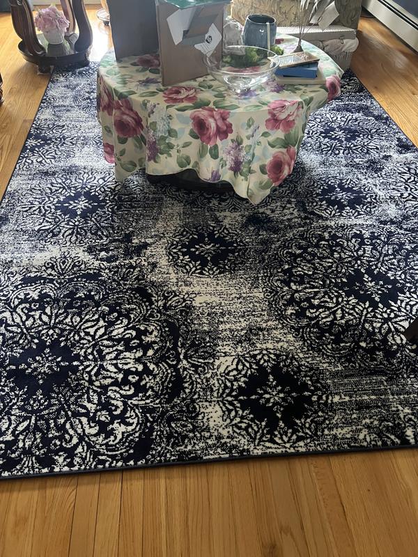 Love the pattern and the softness of this rug in my breakfast nook. Accentuates my black and white table and chairs perfectly. Cuts down on echo and coldness of floor during the winter.