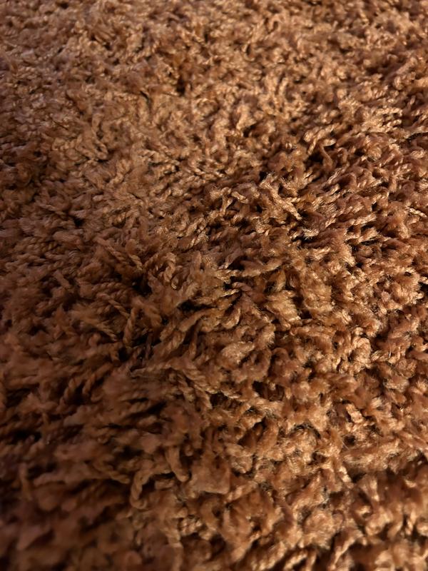 I do like the color. It’s a very light brown/ beige color. Makes me living room so comfy. I do not love how it feels though. It’s not so soft though it’s almost squeaky to walk on. Not sure what material it is.