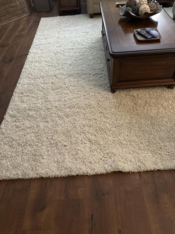 I have ordered 2 other rugs exactly like this. They were very thick & plush, well-made and had very high-quality wide binding on the back--they never rolled on the edges or moved. The color was beautiful, but this rug was sooo different; the pile was so super-thin that you can actually easily see the dark backing through the shag. Also, the binding on this one was so narrow and thin that the edges roll and elevate off the floor. Even w/a pad, it keeps "bunching" & rippling. I'm so unhappy that I would have returned for a refund, but it was not physically possible to ship this back. The 3 rating only because the color was so beautiful, otherwise a -2-. Don't know what happened to this one after buying 2 others.....