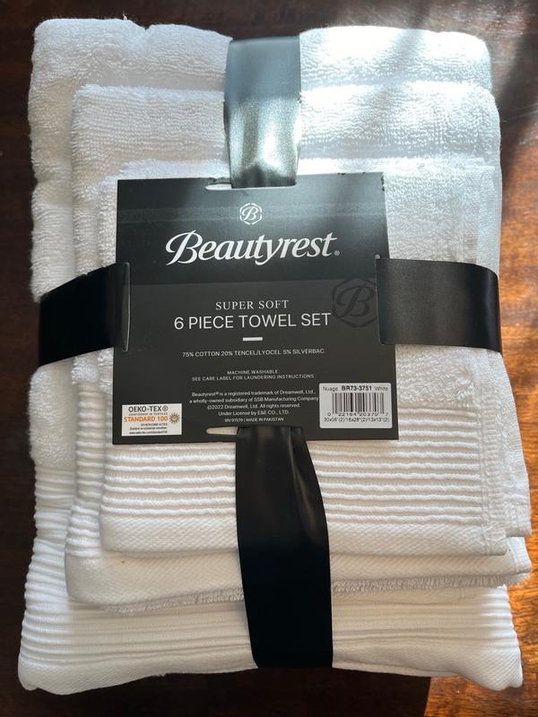 I absolutely love these towels. The 6 piece set comes with 2 very large bath towels, 2 hand towels, and 2 washcloths. The bath towels are the perfect size for wrapping and drying yourself after showering or bathing. They are the softest towels I have ever used, and stay soft even after washing. They are easy to machine wash and dry. I really like the anti microbial properties in the towels that help keep them clean and fresh. The white color goes well with any decor if you want to hang them in your bathroom and look very classy.