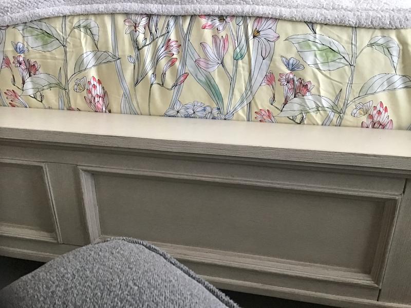 beautiful colors ,soft when people come to vist they say how beautiful my room is. bright cheerful great buy bought at sale price.