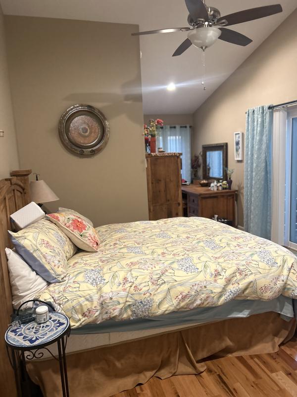 this duvet is just lovely.. the bright pattern makes me feel happy and the blue side is a nice change for my husband ... the pattern a bit girly for him... oh well.. make well washes great!!.. perfect delivery service