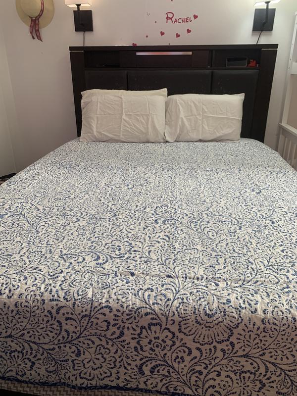 I’m not sure what is going on in the bedding industry but this bedspread might be okay for a smaller bed . Why are bedspreads made smaller these days ? it’s a bummer! I purchased a king size and the bedspread did not fall to the full side of the bed. It’s just too small. I don’t want a dust ruffle and I don’t want to see the bed frame either. I guess it would work with a thin mattress or a dust ruffle. The color was nice, it felt soft, I like the cotton,