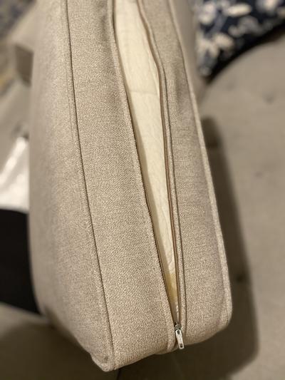 The odor completely dissipated after two weeks. Cushions seem to be three firmness options.The firm is too big for three cushions. suggest medium firm if you want all to fit and be the same firmness. I am very happy with my cushion selection. Will order the matching chairs to complete my set!0