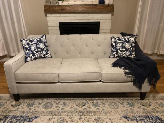 I bought this sofa a few years ago and LOVe it. Perfect size for my smaller living room and classy. I'm now getting the matching chair. Comfortable and timeless.