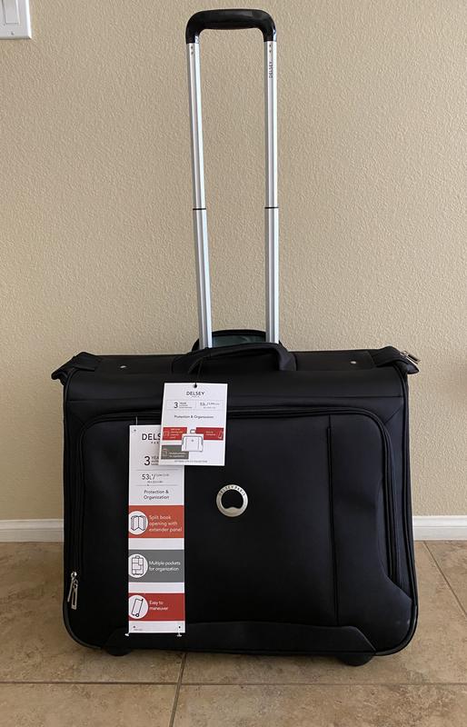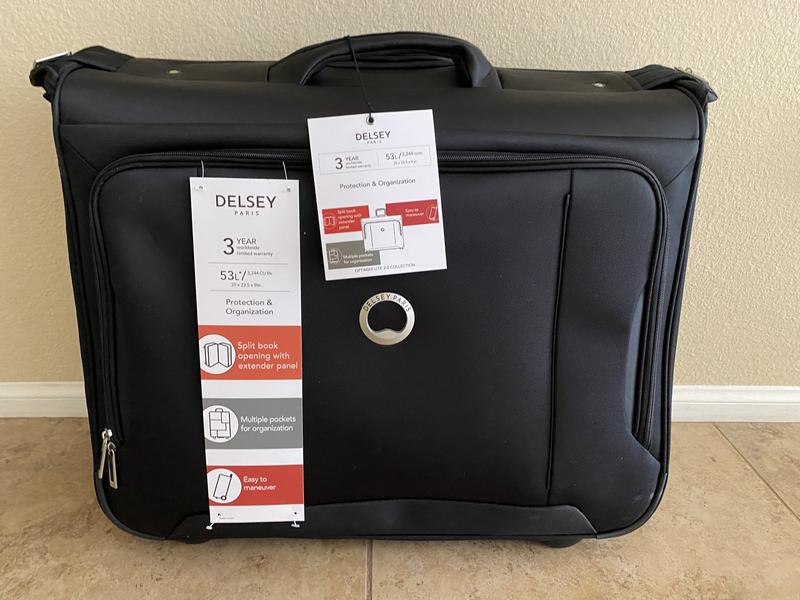 I travel weekly for work and hate ironing or paying to have my outfits pressed after just paying for dry cleaning. The Delsey garment bag worked wonderfully. The garment hook was easy to place my hangers with clothes in with a tab to lock them in place,plenty of room for shoes, accessories and other clothes to allow me to take just one bag. After a day of traveling, the next morning my clothes were meeting ready.The only issues I have is it is bag is wide. It does not have 360 wheels for easy travel in crowded areas by allowing me to turn the bag to a long slender suitcase. The zipper can be a little tricky as well. The trick is to pull up tab area to allow you to get the creases part of the zipper as straight as possible. Once you get it straight it will zip and unzip like a champ.