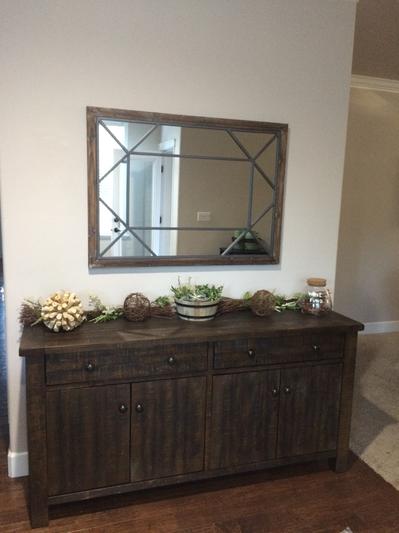 We love this sideboard. We purchased the dining set and the coffee table/ end table (see other review). We use the sideboard in a different part of the house, but love the functionality. The wood looks high quality with a beautiful dark stain. Lots of extra storage and drawers..