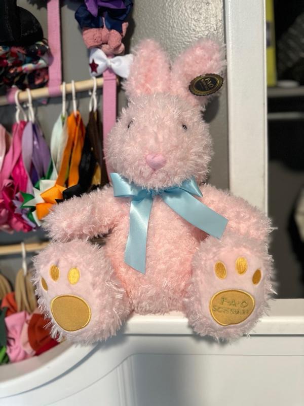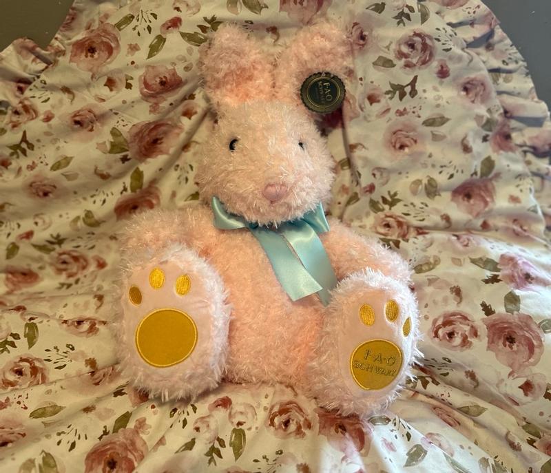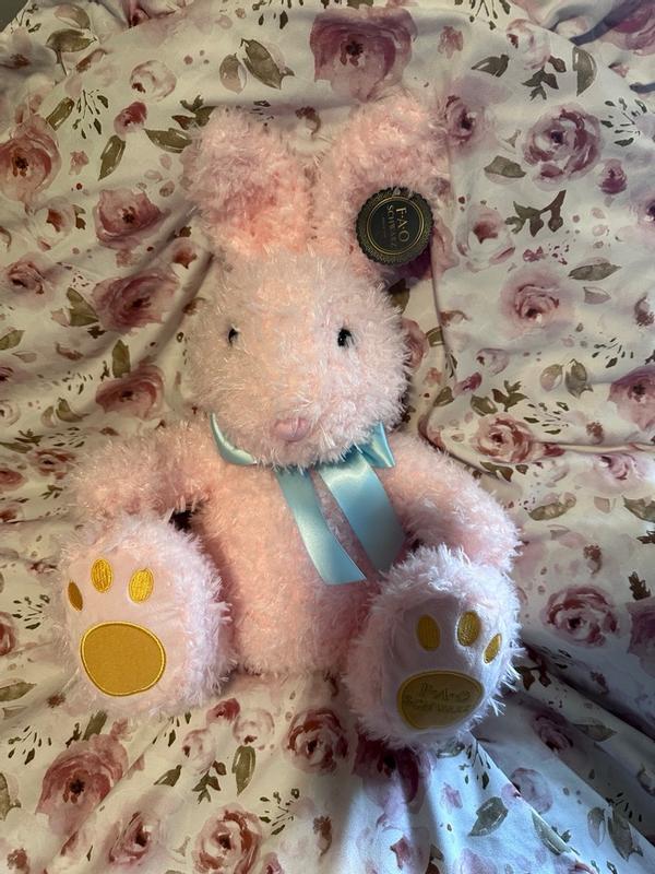 This bunny is so adorable! The shade of pink is so sweet and perfect for any kid to enjoy. The feet are really what sold me <3 Overall I am impressed with the quality and know this will last for years. This is my first product from FAO Schwarz and I see why people love them. The details in the bunny, quality and cuteness are all 10/10!