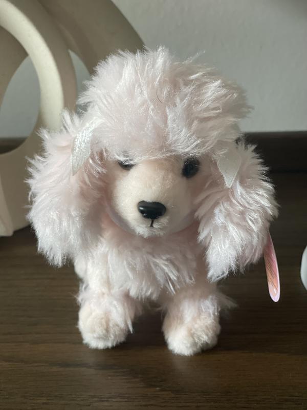 What an adorable and well made little poodle! My daughter loved it! It is small enough to fit in her bag, and soft. She just loves it. It doesn’t shed and the face is adorable! Such a cute toy for my girly girl! It seem well made and looks like it will last for a long time to come.