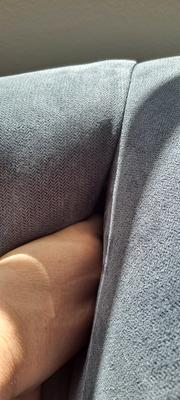 I ordered this sofa online, so did not have the opportunity to sit on it or feel the fabric first. Upon delivery, I immediately was a bit disappointed with the fabric. It is not a quality fabric at all. My previous sofa had a linen-blend fabric, and this sofa seems like it's a polyester blend. The fabric doesn't breathe and when I sit on it, I get hot. Also, the seat cushions sink down pretty low. I think they are just down-fill, with no spring in them. I prefer to have a little bit more support in my seat cushions. The other thing I don't like, is that the apron goes all the way to the floor, so if you are reaching behind the couch, you will stub your toe on it. Other sofas I've had leave a little toe kick area. As a result of these things, I'm returning the sofa and spending a little bit more for a quality fabric and better comfort.