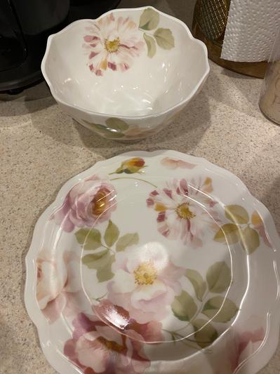 This dinnerware looks spectacular in pictures. In person, not. In spite of the bad reviews, I wanted to give it a chance. But it is true that the flower prints look very cheap, like if they were stickers on top of the ceramic pieces. On top of that, one of the dinner plates came with a defect. It doesn’t have a flat surface, but has a mount of ceramic in the middle. This will be returned for sure. Too bad because I really liked it in the picture.