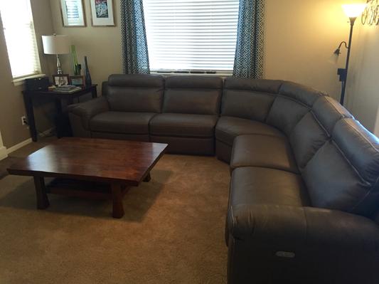 We had searched for nearly a year to find a sectional, in leather that would fit into our family room. We nearly gave up on the idea when we went to Macy's Furniture in Oakbrook, IL. The sales person was outstanding and patiently showed us this sectional which could be configured to fit our room. The leather, workmanship and recliners that didn't look like recliners, were just what we wanted. We ordered it and it was delivered in a few days. The delivery people were fantastic. I would definitely shop at Macy's furniture again and would highly recommend them because of their professionalism, customer service, delivery and set-up. I am beyond impressed and have never found customer service like this from any furniture company. The sectional and couch are beautiful and we are beyond excited at how they look! Thank you Macy's!!