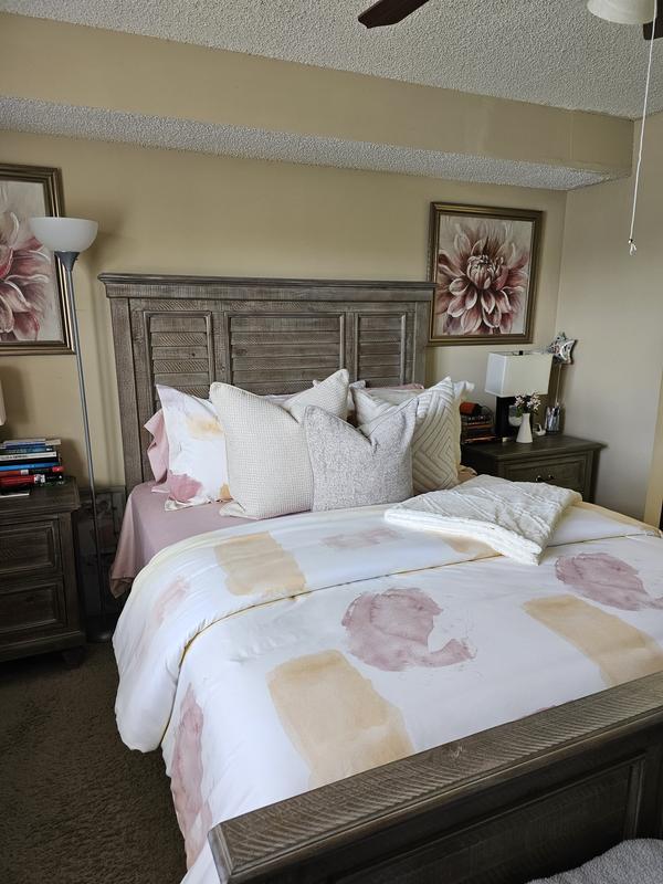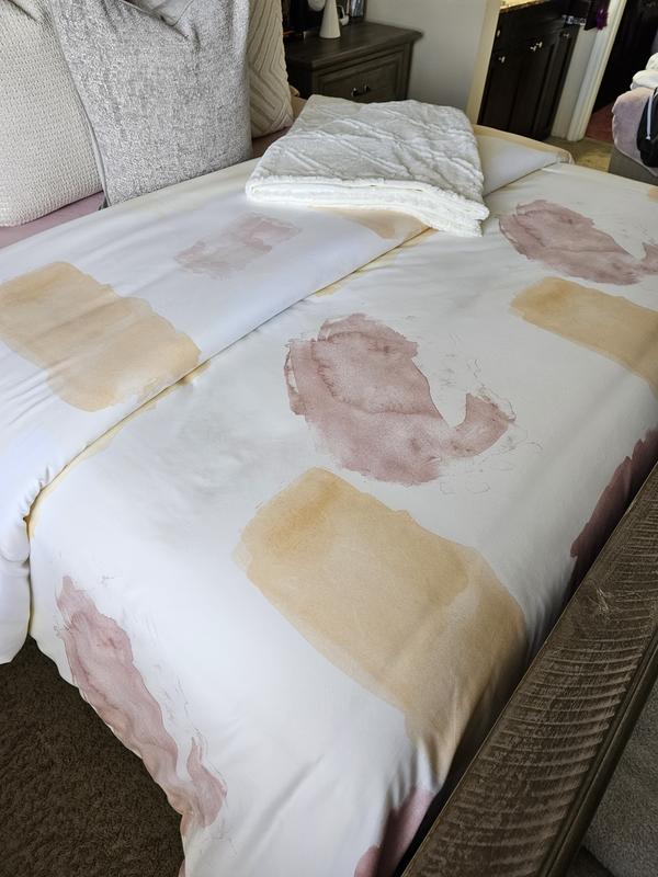 Just kind of blah. I was expecting an ivory/blush background but mine was white. When unfolded and laid over top of the bed, it just didn't look that good.