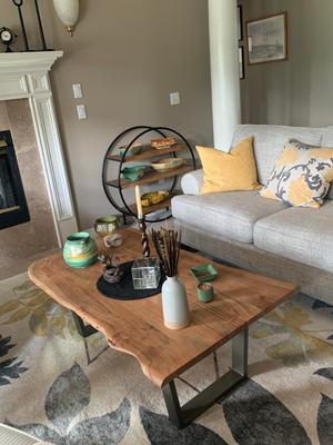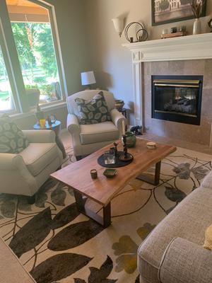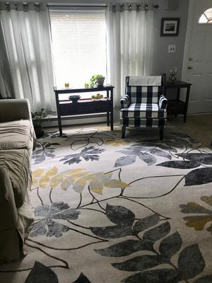 I love this rug it completed my living room which I just did over in light gray with new ticked curtains and buffalo plaid accent chair blends well with my tan couch. The texture and quality of this rug is excellent not too busy pulls my whole living room together.