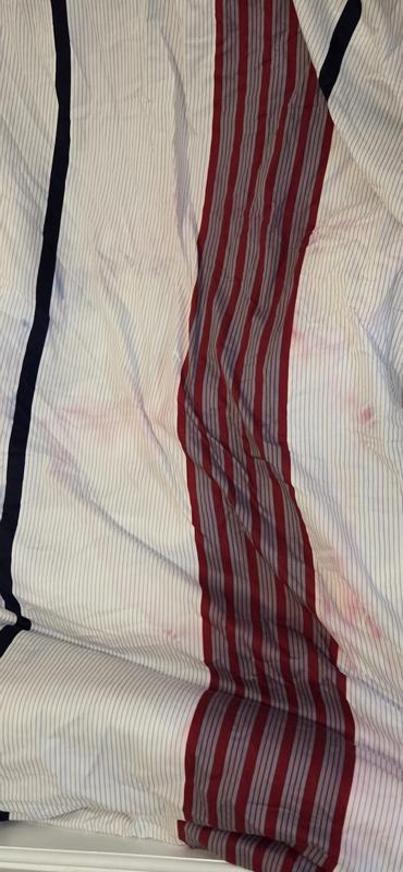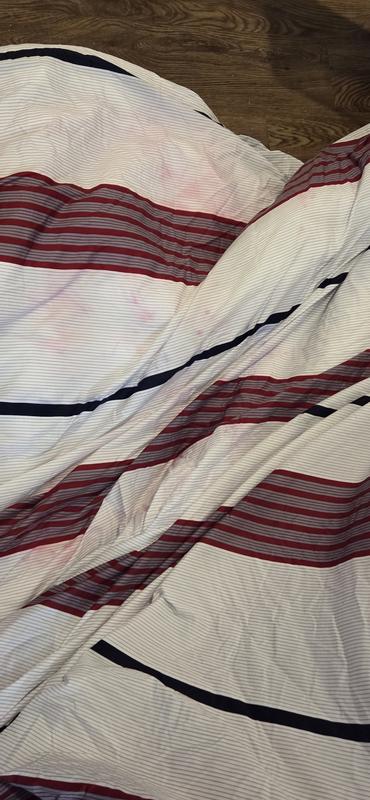 Great gender neutral comforter set from Lacoste!! Material is soft and washes well with minimal piling, 100% cotton so breathable and 180 thread count! Subtle logo, and warm enough for colder months but not too heavy for cooler months.