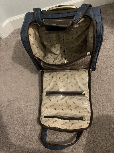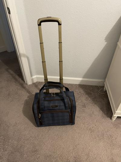 Great luggage and easy to store under seat. Lots of different compartments which made it easy to find items I needed quickly and even without looking. The color is nice and easy to identify in a crowd of luggage. I purchased both the carry on and under seat pieces and they stacked easy for pulling through airport.