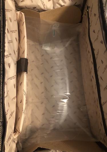 The excellent quality I would expect from London fog. I purchased it in blue, and it’s gorgeous. All of the stitching, the hardware, and the duffel material are sturdy. I love love love the wide opening! And I got it for a great price.