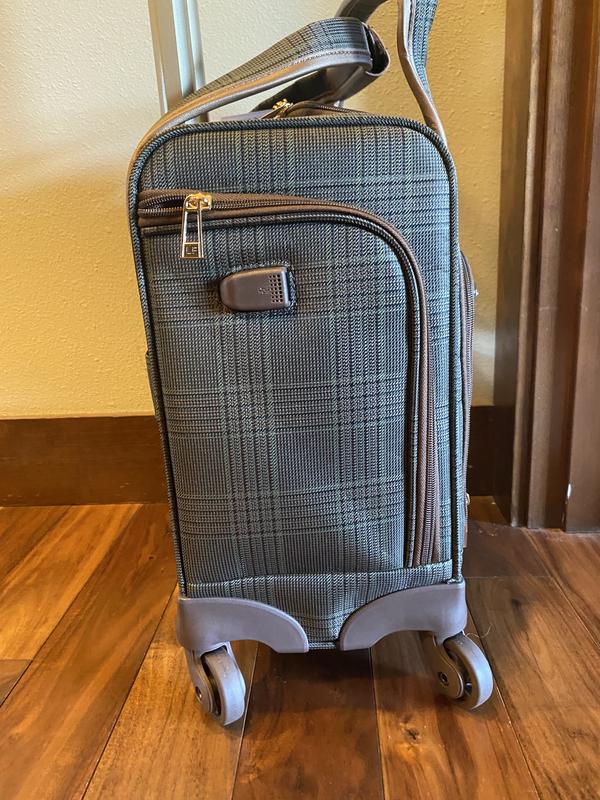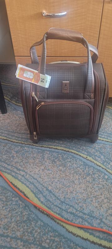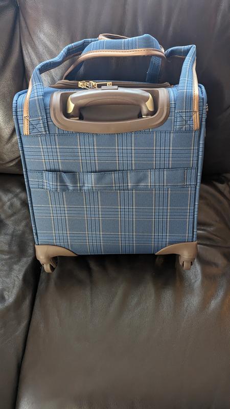 The 15 inch bag rolls easily and the telescoping handle is strong and secure. It fits under the seat in an airplane (even the small ones - but it’s tight!) love the space provided for a phone battery bank with easy plug in. The plaid colors are very nice!