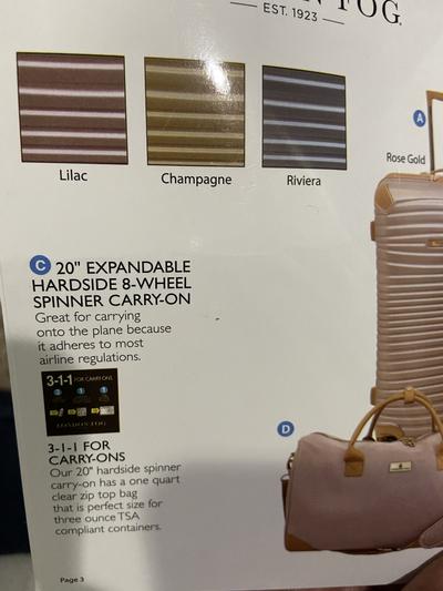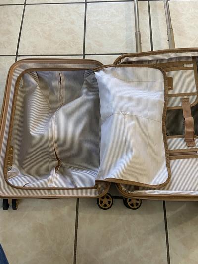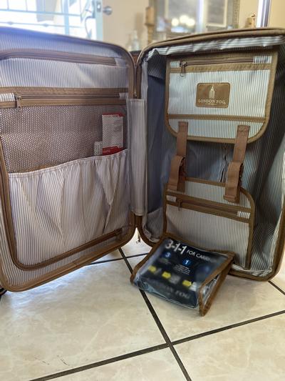 It is a beautiful suitcase and has many features not found in most carry-on suitcases, which I greatly appreciate! Rather than the inside having just one side with a zippered net covering and the other with the two triangle-shaped straps, it has several zippered pockets and even a small clear zippered pouch just the right size for the TSA limited size liquids! It is much more functional than any carry-on I've found, and certainly one of the most attractive!