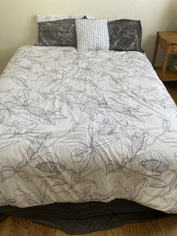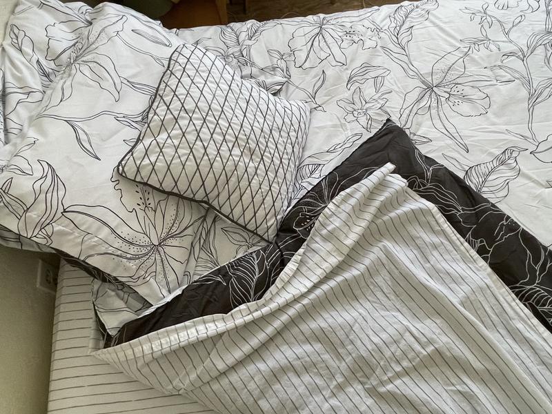 So extremely happy that i got to pick this Madison Park Essentials - Lilia Reversible comforter set with cotton bed sheets. Not only is it super comfortable, it’s a beautiful print! The stitching is great, and i love that it is reversible with either the option of grey or white.